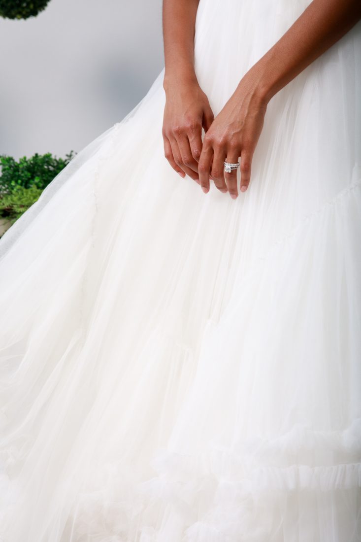 The Bovolo engagement ring is a square, Asscher cut platinum ring. Inspired by the Palazzo Contarini del Bovolo in Venice, Ardem Aslanian describes it as “an architectural jewel translated into a wedding jewel.”