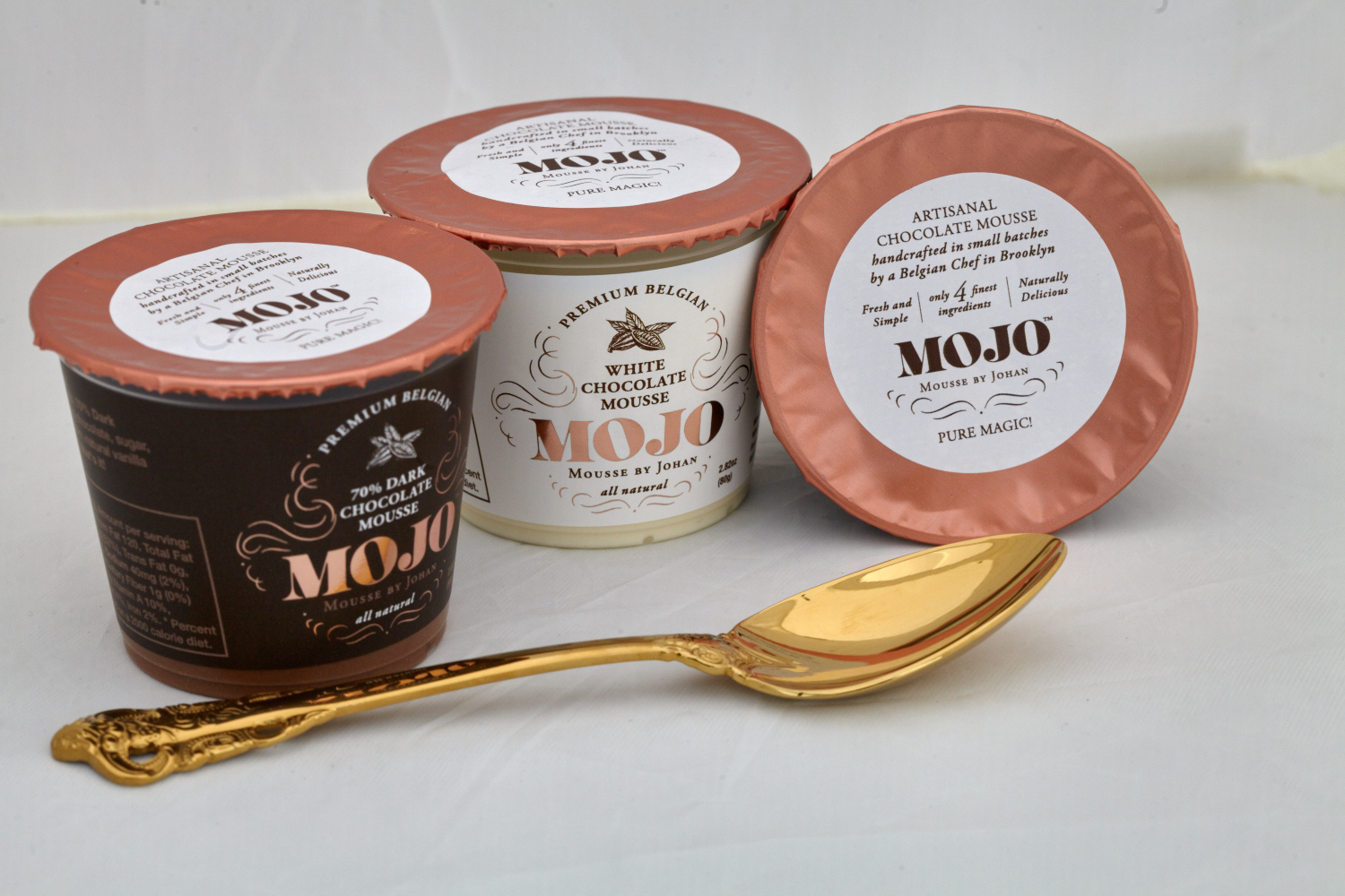 JH: We initially started selling the mousses under the name “JOHAN” but found out shortly after that name was already trademarked, so we came up with MOJO MOusse by JOhan. We immediately connected to that word because what we do is sort of make the unexpected happen every day: in a world where 80% of desserts available in stores are frozen at some point, to keep a fresh mousse made in small batches with such premium ingredients, making the taste of a real authentic Belgian mousse available at the convenience of local stores shelves at accessible prices…it pretty damn magical.