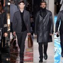Versace‘s fall collection takes its inspiration from two of the most iconic tribal subcultures from our society, bikers and cowboys. Donatella utilizes colored denim and techno-fabrics on her new designs which are intended for the gentleman unafraid to make an entrance.