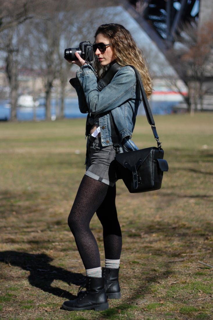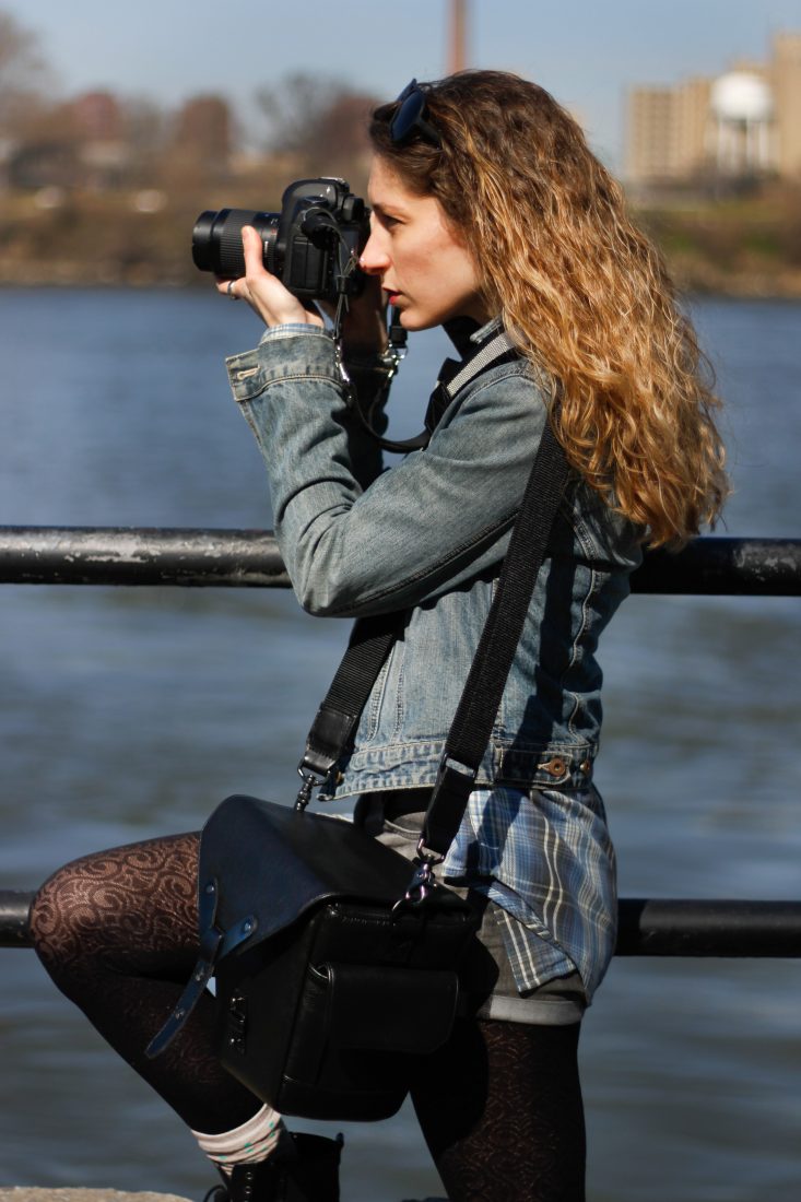 Our model Katie, an actress and visual artist in Astoria, took the bag out for a test spin in Astoria Park with a Canon 5D on a gorgeous early spring day.
