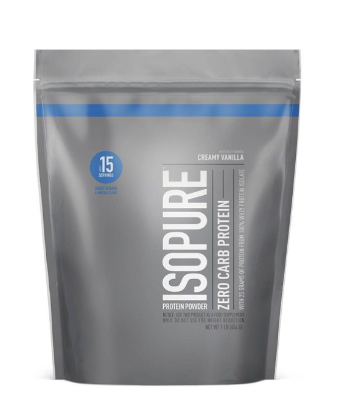 Isopure. 100% whey protein isolate powders amp you up, without any unwanted weight. Just pick your level: Zero Carb or Low-Carb (which also has ZERO sugar), both with a whopping 25 grams of protein per scoop. It’s 100% whey protein isolate loaded with vitamins, minerals and nutrients to keep you going strongand always without gluten, lactose, or any impurities. Made with our complete microfiltration process to be the only completely clear milk protein when dissolved in water. Available in a range of delicious flavors to mix up some seriously delicious and dynamic recipes.