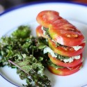 Salad is also a common starter. With that said, the sound of beginning your meal or pairing your main dish with a classic mix of lettuce, tomatoes, carrot shreds, and an excess of croutons and dressing seems monotonous. Rather than boring your taste buds with yet another mix of your usual legumes, prepare a napoleon. A layered stack of Heirloom Tomato, Kale, and Basil Pumpkin Seed Napoleons is the perfect salad substitute for your barbecue. Both flavorful and filled with fresh basil, this starter is vegan, raw, gluten free, and soy free!