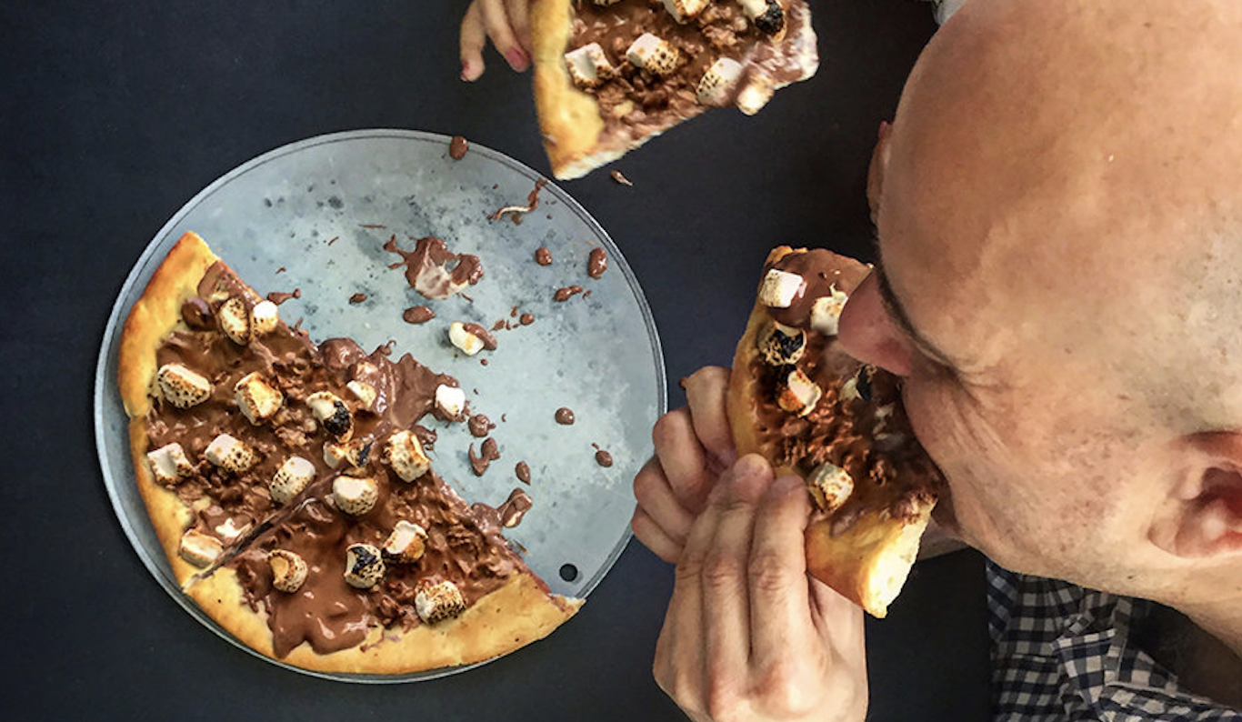 With so many dishes to choose from, what did Oded say was the most indulgent in the shop? “Maybe still the chocolate pizza. This is my original recipe, and it’s something that is so much identified with me and with my creations and with the Willy Wonka theme that I did in the past.” You can pick up a slice of this decadent combination of chocolates, hazelnut, and marshmallows whenever you stop by Blue Stripes.
