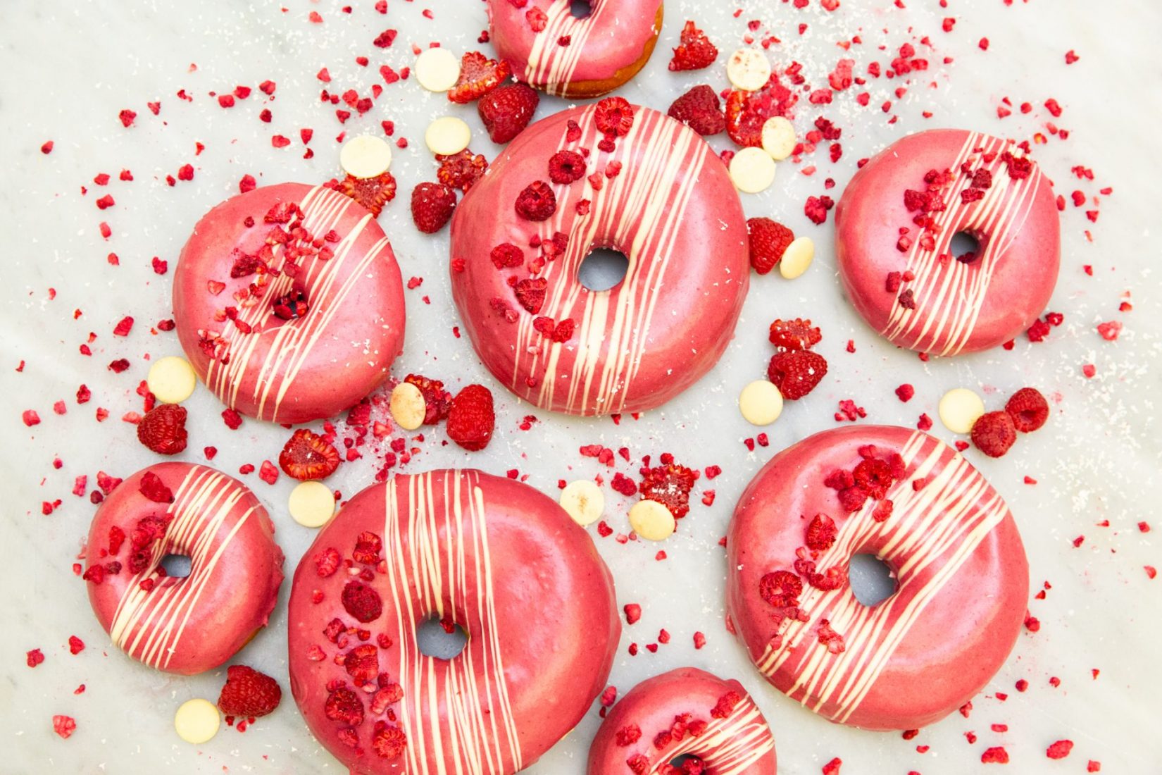 I’d seen Iskra eating our doughnuts, and she always had such a great reaction to them, so we already knew she was a fan. We love the work she does, and the fact that she is a model who still enjoys sweets. I sent her an Instagram DM, and let her know that we’d like to make a doughnut for her, and she was ecstatic. She let me know her favorite flavors are white chocolate and raspberry, so our chef Laura Palace came up with a phenomenal glaze that blends both of those, and topped it off with fresh dried raspberries and a white chocolate drizzle.