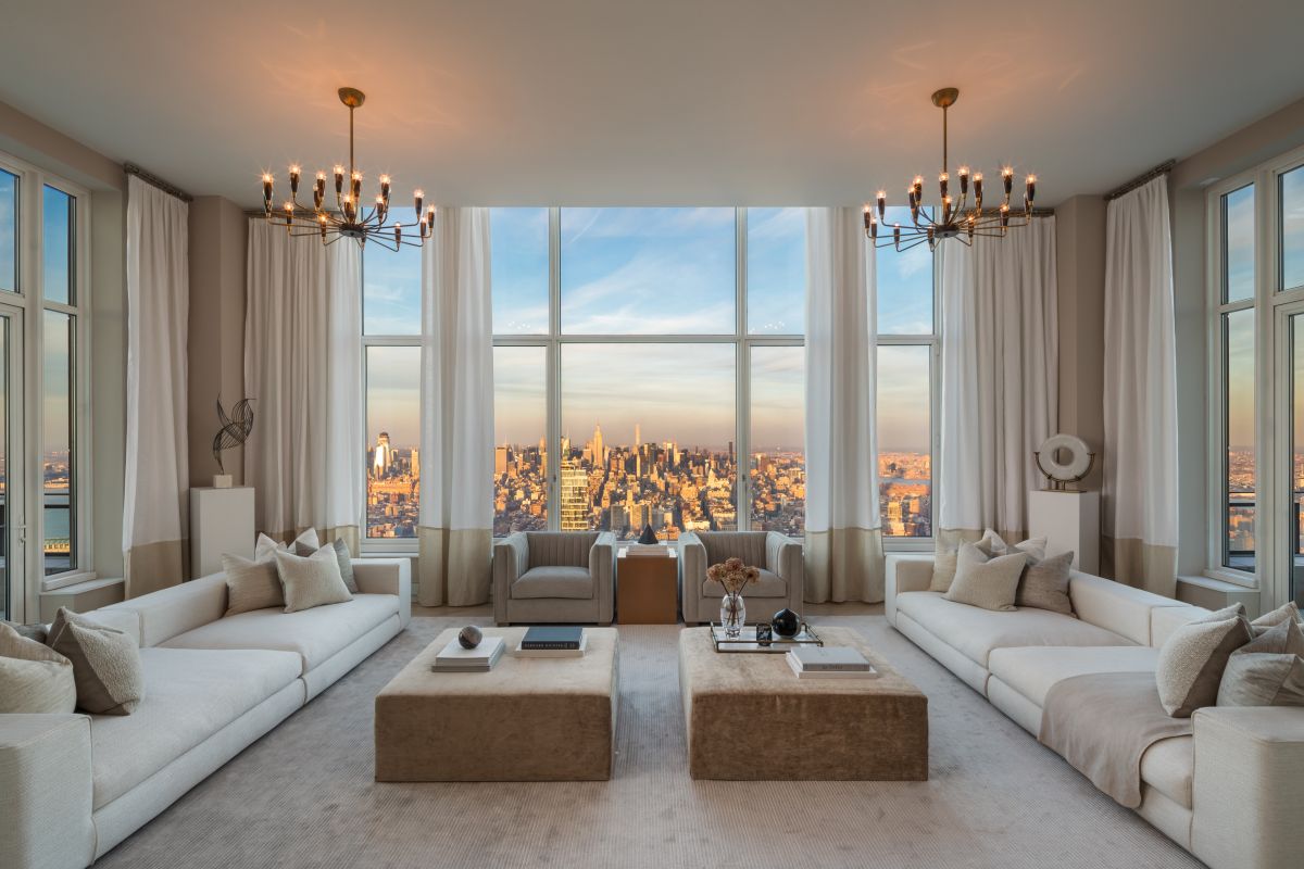 EF: Unit 56 at 23 East 22nd Street in Flatiron entered contract this week, with the last asking price of $16,995,000. Built-in 2009, this gut-renovated condo spans 3,310 square feet with 4 beds and 3 full baths. It features a 360-degree park, river, and city views, a private foyer with a south-facing view, a primary suite with an en-suite bathroom and walk-in closet, hardwood floors, and much more. The building provides a full-time doorman and concierge, a state-of-the-art fitness center, an indoor pool, a steam room, a parlor room, and many other amenities.