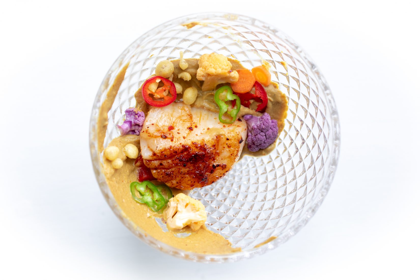 Mehta prepared dishes that used parts of ingredients that would commonly be wasted. At his restaurant, Graffiti Earth, Mehta and his team do things like make mousse and ice cream out of food scraps like plant stems or used coffee grinds. One of his dishes for the workshop included a mousse made from fish heads, and the second used broken scallops, which are damaged scallops that would normally be tossed back by fishermen. Mehta encourages chefs and home cooks to make soup often because it’s a great way to use up ingredients.