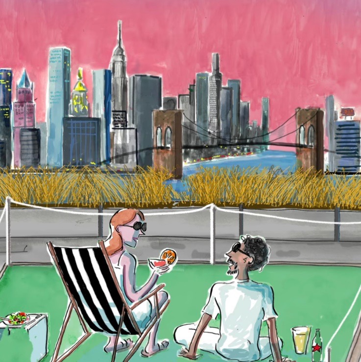 A new rooftop food & beverage experience features 28 mini lawns for responsible alfresco dining, summer cocktails, special programming, and lawn games