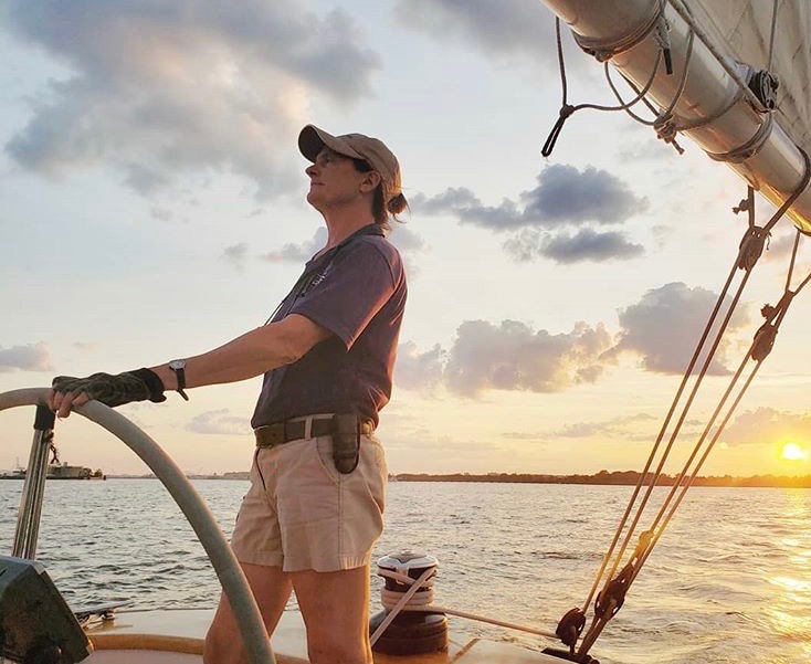 Capt Kat: Our crew is amazing. For me to maneuver the boat under sail, the crew must man the sails. We are sailing the boat as a team. They have an awareness of the safe operation of the vessel while also chatting with guests and serving drinks.