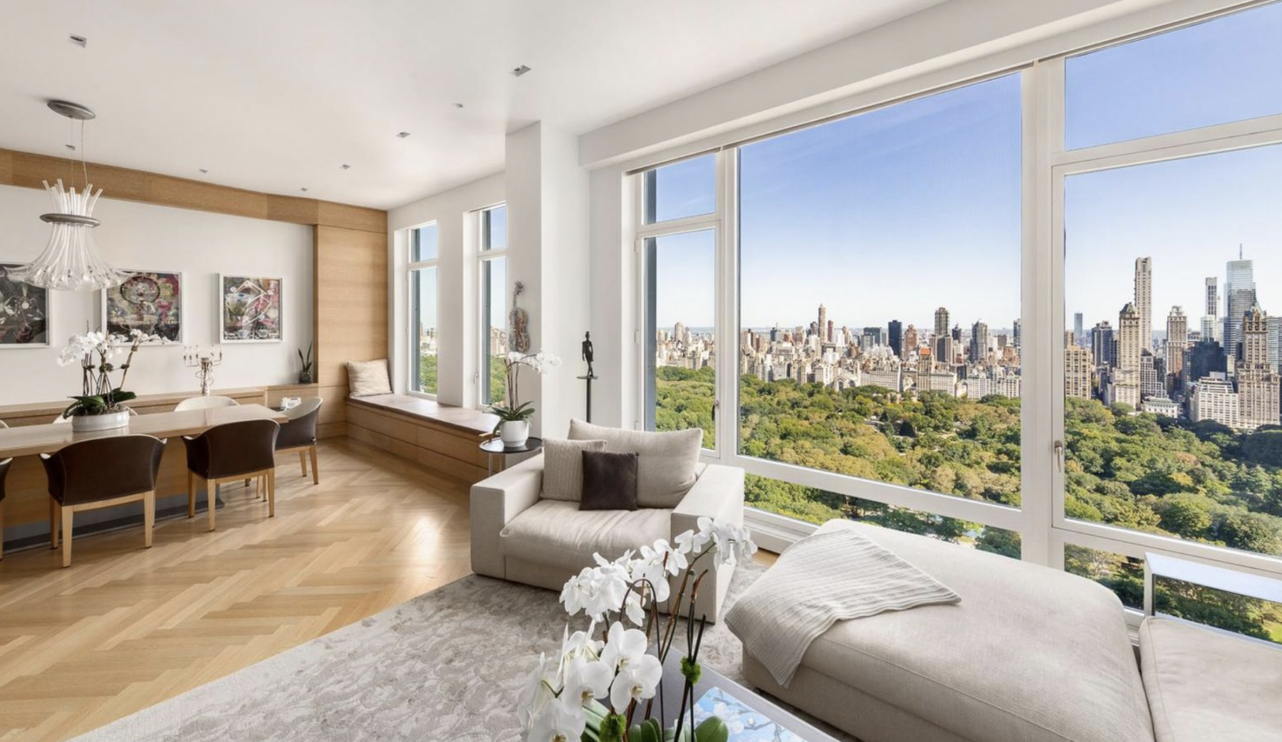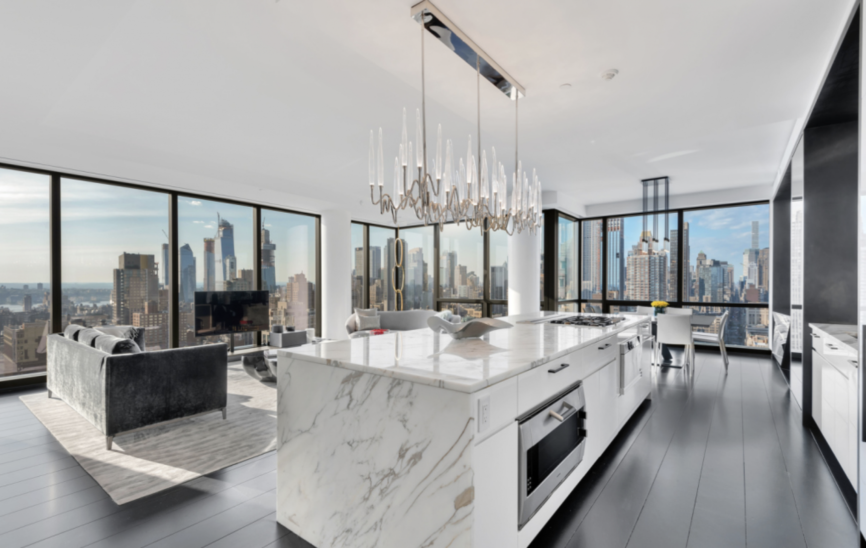 EF: Unit 56 at 23 East 22nd Street in Flatiron entered contract this week, with the last asking price of $16,995,000. Built-in 2009, this gut-renovated condo spans 3,310 square feet with 4 beds and 3 full baths. It features a 360-degree park, river, and city views, a private foyer with a south-facing view, a primary suite with an en-suite bathroom and walk-in closet, hardwood floors, and much more. The building provides a full-time doorman and concierge, a state-of-the-art fitness center, an indoor pool, a steam room, a parlor room, and many other amenities.