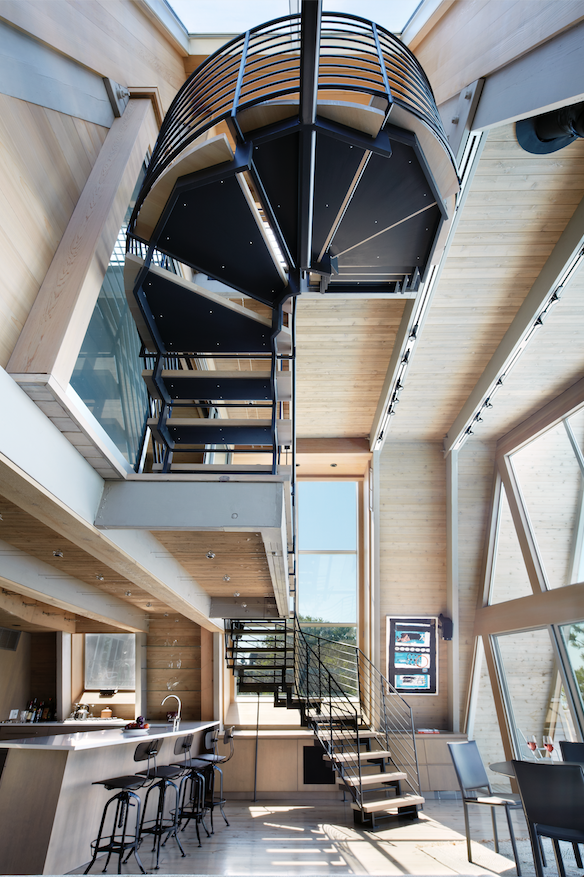 Blocking that great view and occupying the heart of the house was the old, six-foot-diameter steel spiral staircase. The clients were willing to sacrifice a bedroom or two to remove that remnant.
